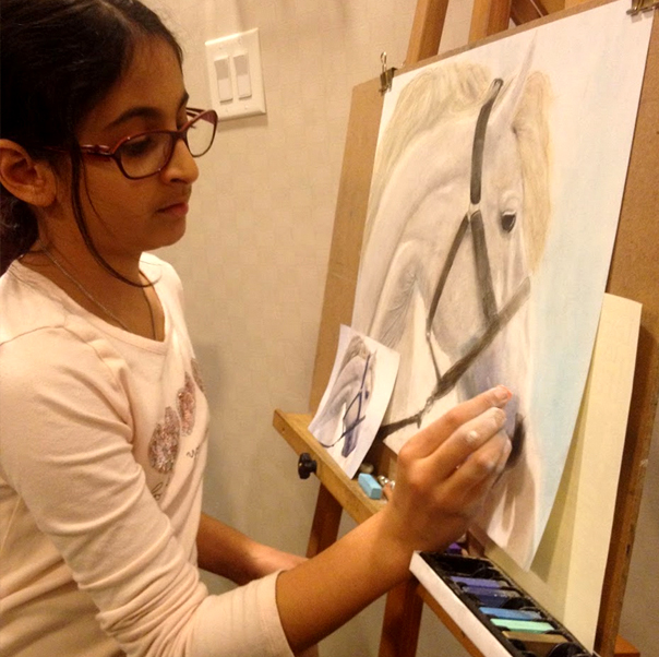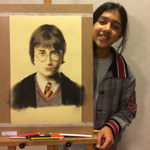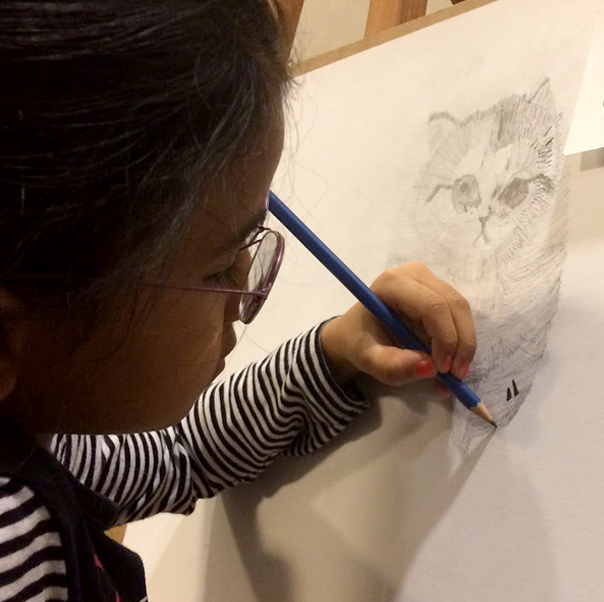 Within a few years, my daughter was introduced to different mediums, pencil, colour pencil, pastels, watercolour and oil. He was very patient in teaching her various techniques. He constantly assessed and tailored the class to her needs.