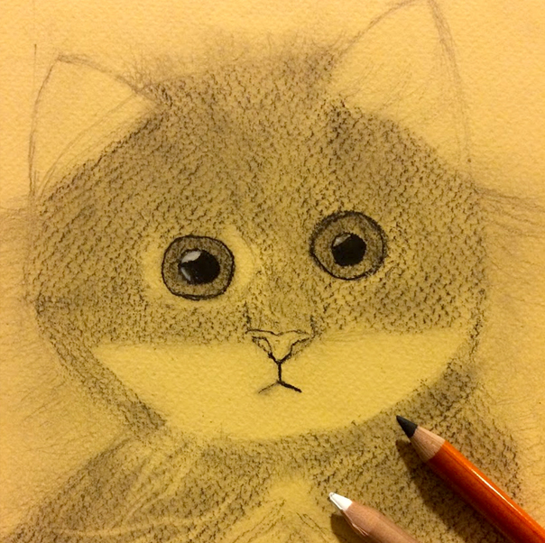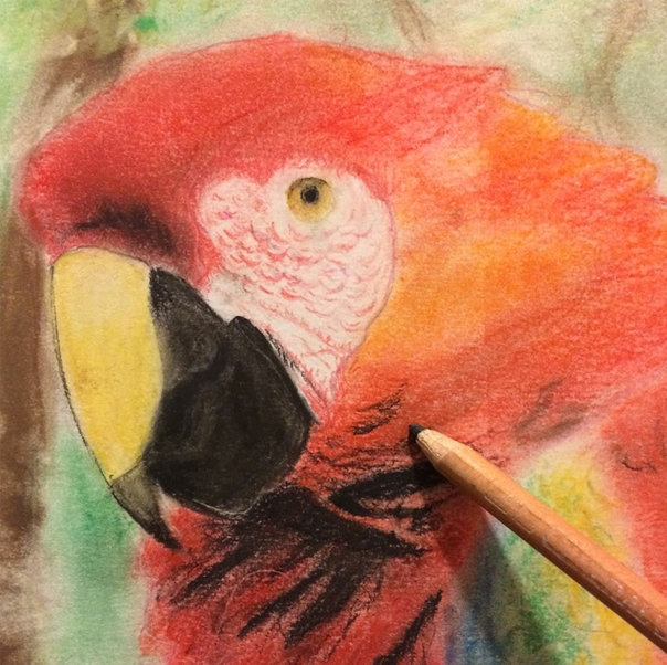 Graphite, charcoal, coloured pencils, ink, soft pastels, watercolour, acrylic, and oil painting.